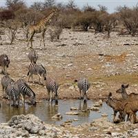 Dzień w całości przeznaczony na safari w PN Etosha; od wczesnego ranka zamierzamy tropić słynnych przedstawicieli dzikiej fauny w ich naturalnym środowisku. Dla wielu Uczestników najważniejszym celem będą oczywiście wielkie koty Etoshy: lew, lampart i gepard. Zobaczymy też stada słoni, zebr, hieny, różnorodne antylopy, w tym kudu, oryks, impala, eland, skocznik i gnu, a także żyrafy, nosorożce, szakale i drapieżne ptaki. W ciągu dnia przerwa na ciepły lunch i możliwość zanurzenia się w chłodnym basenie. Nocleg w tej samej lodży, co dnia 11.