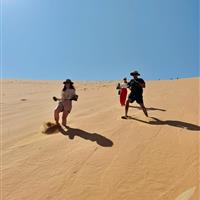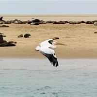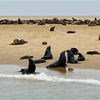 Rankiem przejazd do Walvis Bay, dokąd prowadzi m.in. najdłuższa na świecie aleja palm, ciągnąca się przez niemal 5 km. Z przystani wyruszymy na wspaniałą, edukacyjną wycieczkę morską po zatoce w poszukiwaniu przedstawicieli tzw. Wielkiej Piątki Morskiej, czyli wielorybów, delfinów, ryby mola, żółwia skórzastego oraz uchatek. Tych ostatnich będzie aż w nadmiarze, z dużym prawdopodobieństwem, że jakiś osobnik tego gatunku nagle zawita na pokładzie katamaranu, zwabiony rybą od naszego lokalnego przewodnika. W tym samym celu na pokład przybywają też czasami olbrzymie pelikany, kompletnie niebojące się ludzi. Spotkanie „oko w oko” z takim ptakiem pozostawia niezapomniane wrażenia. Trasa rejsu prowadzi w kierunku Pelican Point, ze słynną latarnią morską i 60 000 mieszkających tam uchatek. Na pokładzie zjemy też pyszny i obfity lunch, z winem musującym, wspaniałymi, świeżymi ostrygami oraz innymi daniami rybnymi, mięsnymi i wegetariańskimi. Po powrocie do portu kolejną atrakcją będzie safari po wydmach i plaży. Najpierw miniemy kopalnię soli morskiej z ogromnymi basenami, wypełnionymi w różnym stopniu tym minerałem, nadającym wodzie różnorakie barwy. W Walvis Bay Lagoon raz za razem zobaczymy kłębiące się stada flamingów. Kiedy dotrzemy do brzegu oceanu, czekają nas 2 scenariusze: jeśli przypływ będzie wystarczająco niski, do Sandwich Harbour dotrzemy jadąc po dzikiej plaży. W przypadku wysokiego przypływu, cel osiągniemy trasą przez wydmy. W końcu wyjdziemy z jeepów, aby sfotografować kolejne ikoniczne miejsce Namibii: Sandwich Harbour. Ciągnące się po horyzont wielkie wydmy, wdzierające się w srogi ocean, to widok jedyny w swoim rodzaju. Niemniejsze wrażenia daje „rajd” po wydmach Toyatami Land Cruiser ze wzmocnionymi silnikami, prowadzonymi przez doświadczonych kierowców, dając wrażenia jak na kolejce górskiej. W czasie wycieczki zostanie zaserwowany nam drugi, obfity lunch „na bogato”. Na koniec powrót do Walvis Bay plażą lub wydmami, po czym przejazd do hotelu w Swakopmund na nocleg.