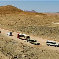 Przylot do Windhuk, skąd na pokładzie samochodów terenowych Toyota Land Cruiser udamy się na południowy zachód, w głąb Pustyni Namib, podróżując przez malownicze tereny sawanny i buszu w Central Highlands oraz PN Namib-Naukluft. Po drodze zatrzymamy się przy spektakularnym punkcie widokowym na przełęczy Spreetshoogte Mountain Pass, zanim zjedziemy na pustynię z terenów wyżej położonego Central Plateau. Wieczorem zakwaterowanie w malowniczo położonej, pustynnej lodży.