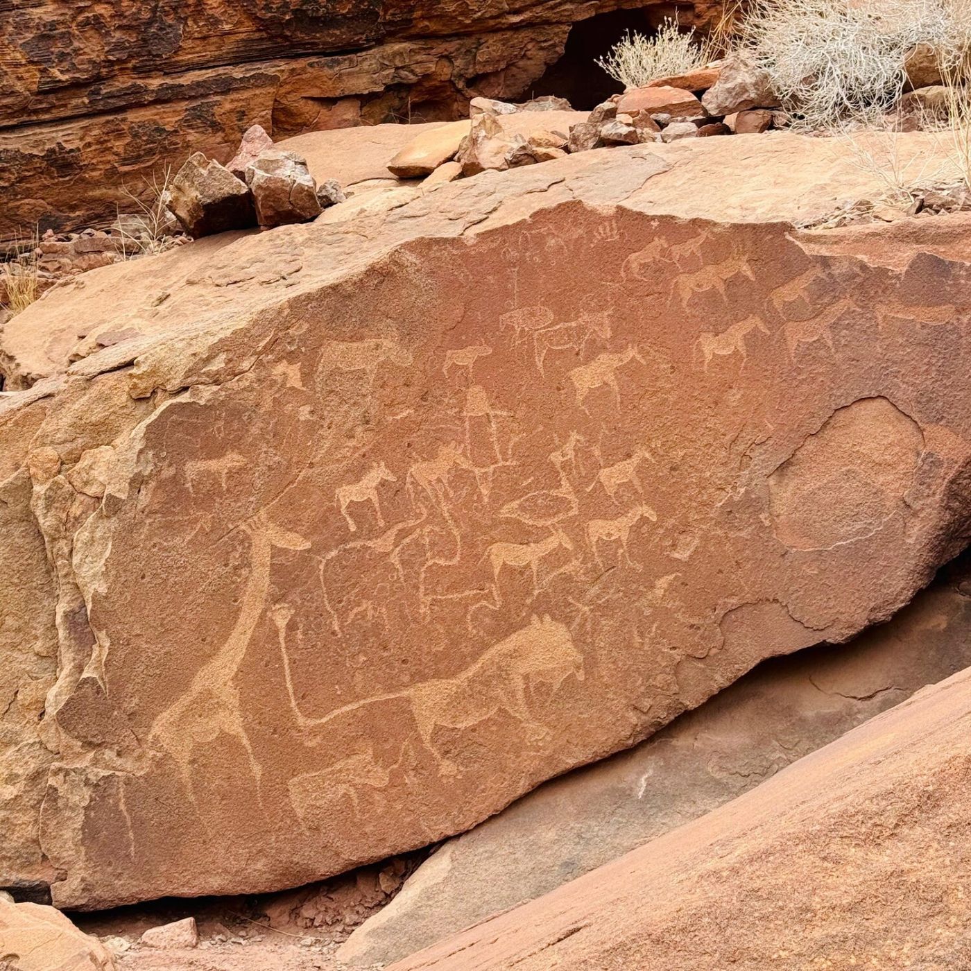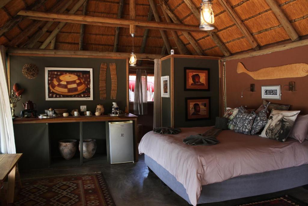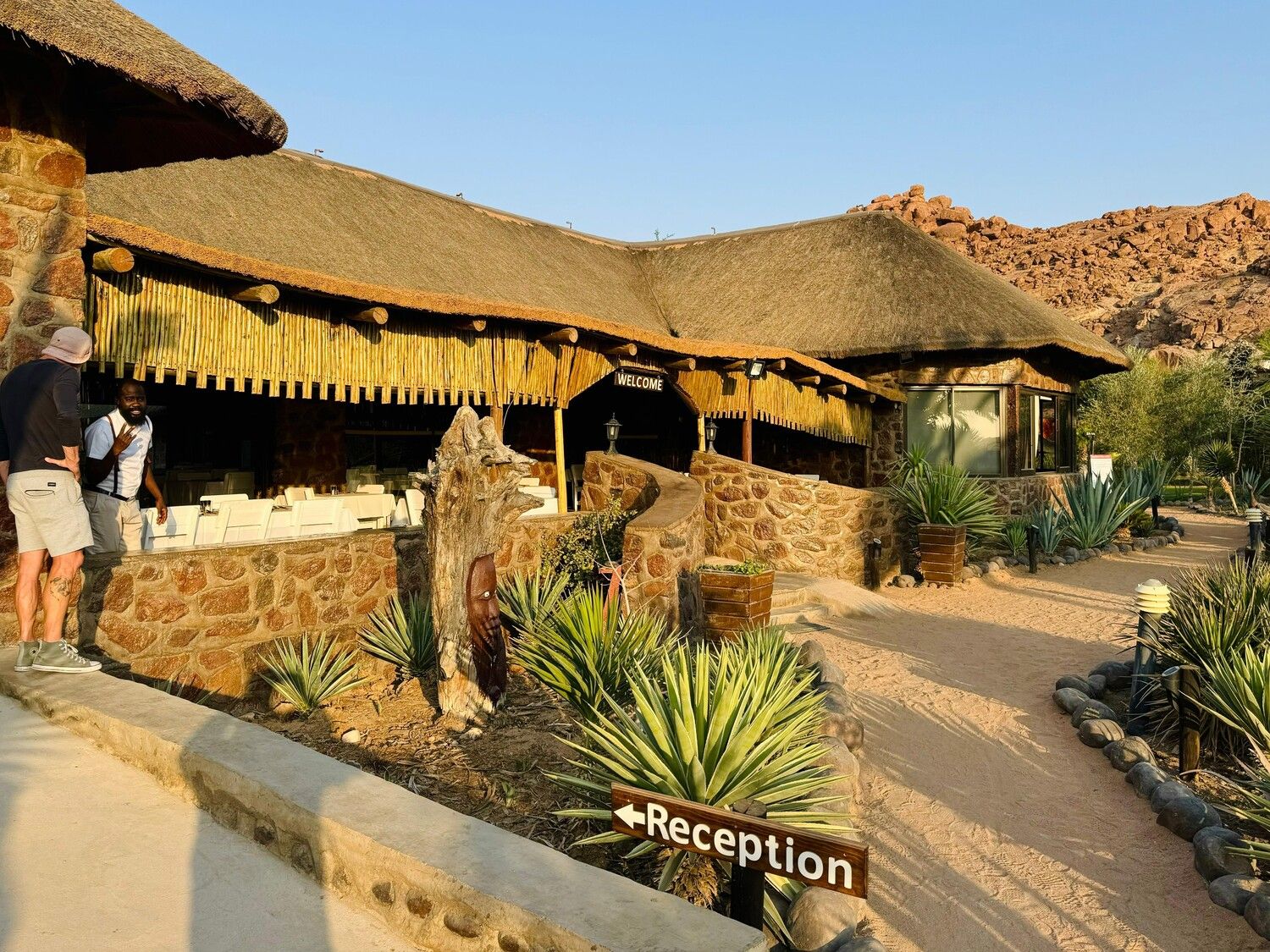 Wizyta etniczna w Living Museum, prezentującym kulturę Damara. Przedstawiciele ludu, ubrani w tradycyjne stroje, krok po kroku przybliżą nam swój specyficzny język, domy, narzędzia pracy, rękodzieło, a także śpiew i taniec. Po lunchu czeka nas wizyta w Twyfelfontein, miejscu wpisanym na listę UNESCO, gdzie na rdzawych skałach znajduje się ponad 2000 rycin stworzonych przez Buszmenów. Przedstawiają one zwierzęta, myśliwych, polowania, ludzi i ich styl życia. Popołudnie z romantycznym zachodem słońca, kolacja i nocleg w malowniczo położonej lodży z basenem, pośród skalistych zboczy Damaraland.