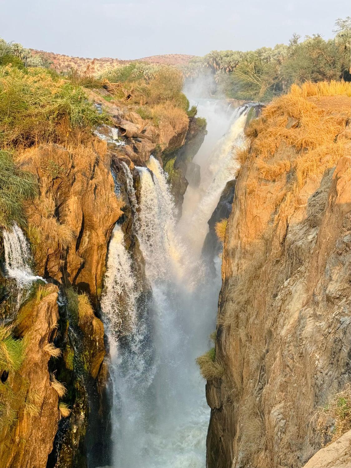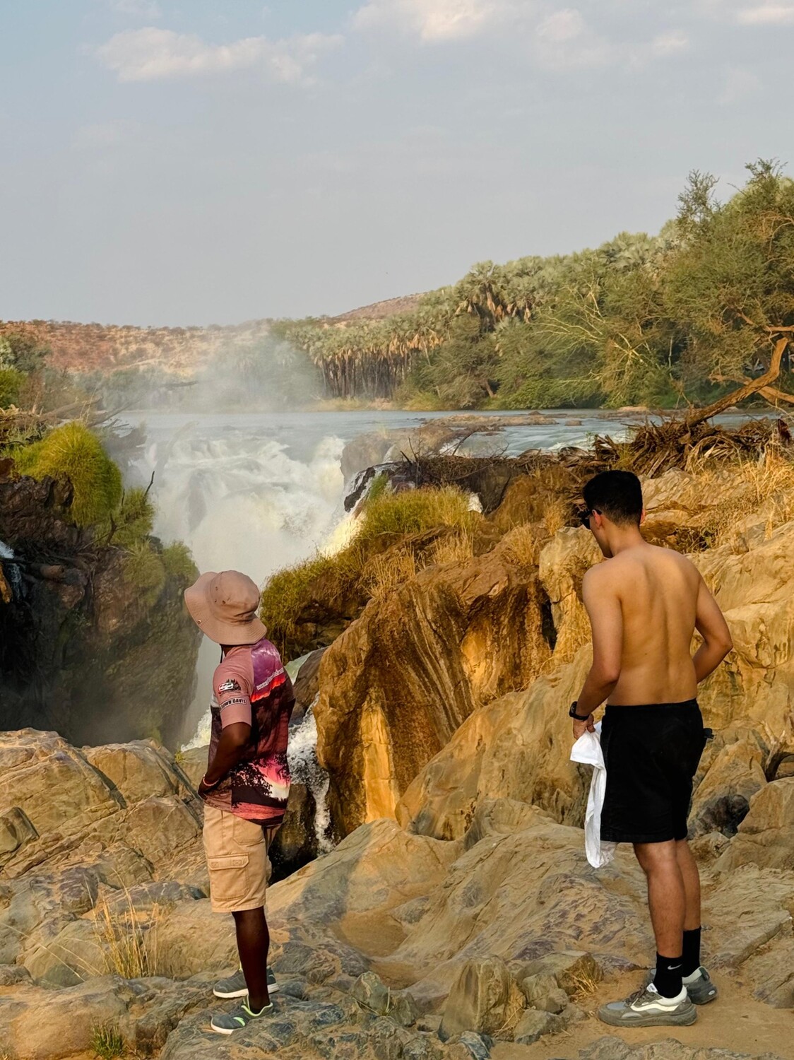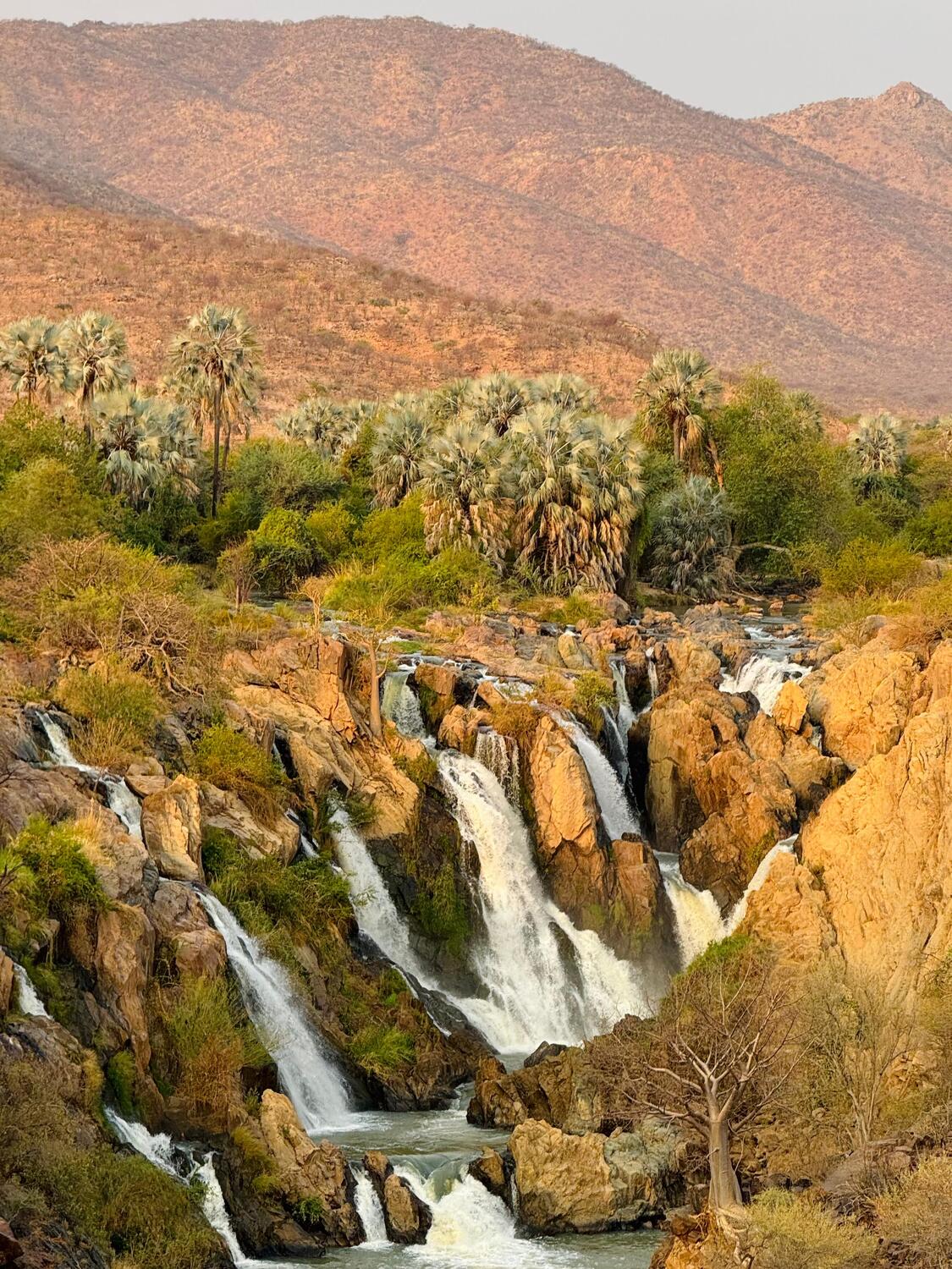 Po dłuższym przebywaniu w suchym interiorze Namibii, spotkanie z płynącą wodą daje szczególną radość. I to jak płynącą! Wodospady Epupa onieśmielają swoją liczebnością, rozmiarami i znacznym obszarem, który obejmują. Gdzie nie spojrzeć wartka rzeka albo wodospad, a wokół bujna, zielona wegetacja wszelkich rodzajów i kształtów. To idealny czas na spokojny dzień z pieszym odkrywaniem kolejnych wodospadów, które można obserwować z różnych punktów widokowych. Chętni będą mieli możliwość wykupienia zabiegów spa, lub po prostu relaksować się nad brzegiem rzeki Kunene przy książce czy chłodnym napoju. Cokolwiek wybierzesz, będzie to orzeźwiająca odmiana po wojażach w buszu i na pustyni.