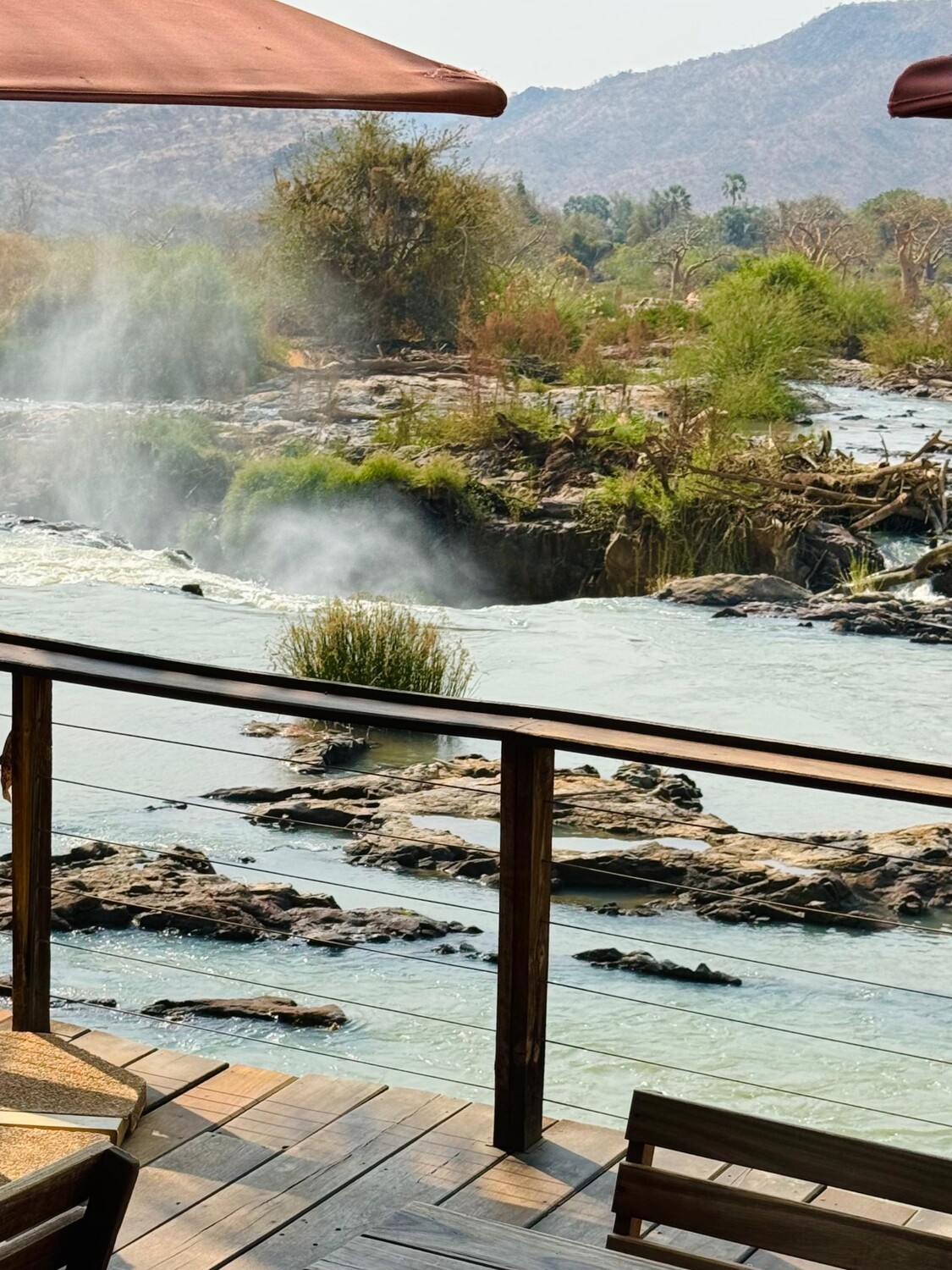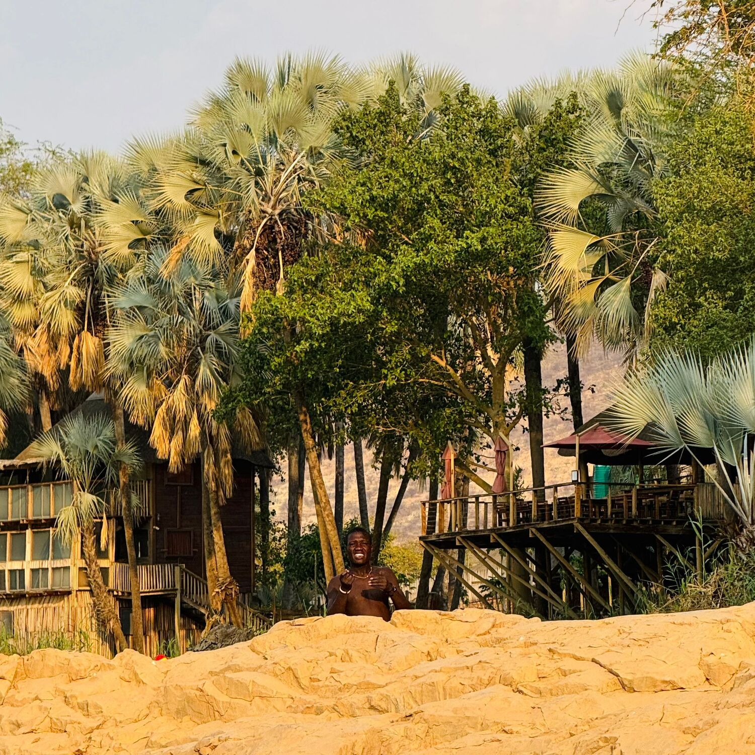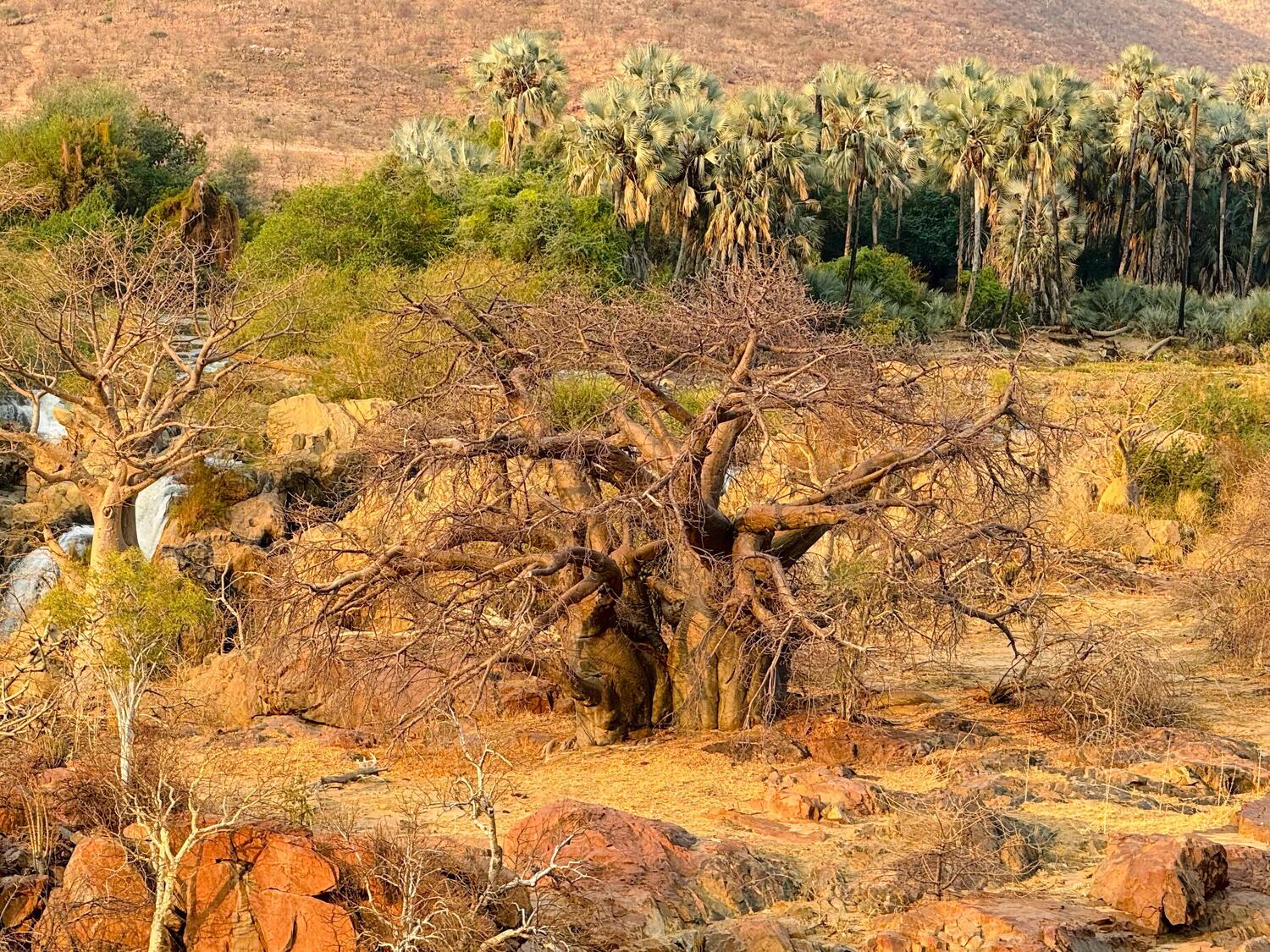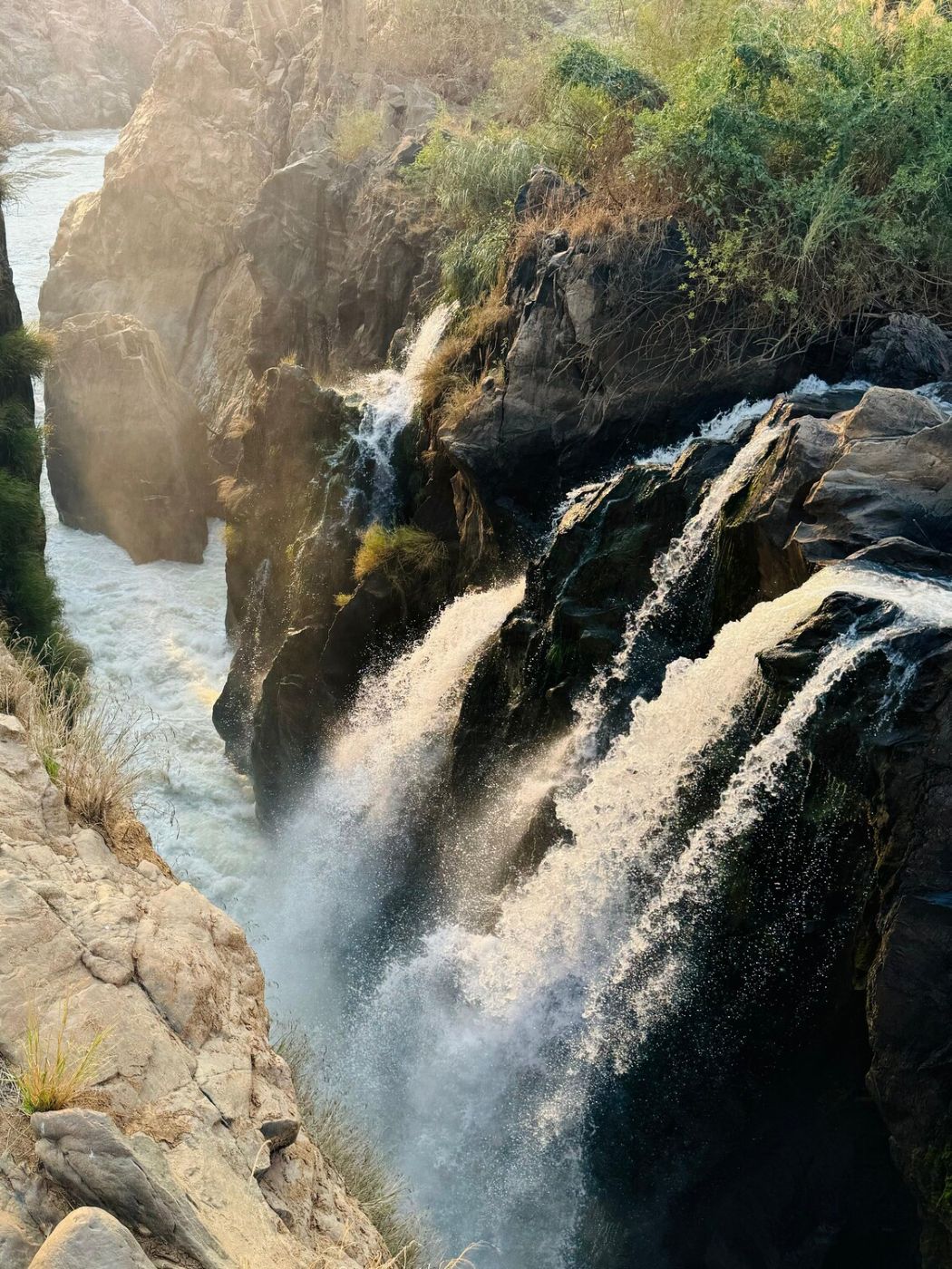 Po dłuższym przebywaniu w suchym interiorze Namibii, spotkanie z płynącą wodą daje szczególną radość. I to jak płynącą! Wodospady Epupa onieśmielają swoją liczebnością, rozmiarami i znacznym obszarem, który obejmują. Gdzie nie spojrzeć wartka rzeka albo wodospad, a wokół bujna, zielona wegetacja wszelkich rodzajów i kształtów. To idealny czas na spokojny dzień z pieszym odkrywaniem kolejnych wodospadów, które można obserwować z różnych punktów widokowych. Chętni będą mieli możliwość wykupienia zabiegów spa, lub po prostu relaksować się nad brzegiem rzeki Kunene przy książce czy chłodnym napoju. Cokolwiek wybierzesz, będzie to orzeźwiająca odmiana po wojażach w buszu i na pustyni.