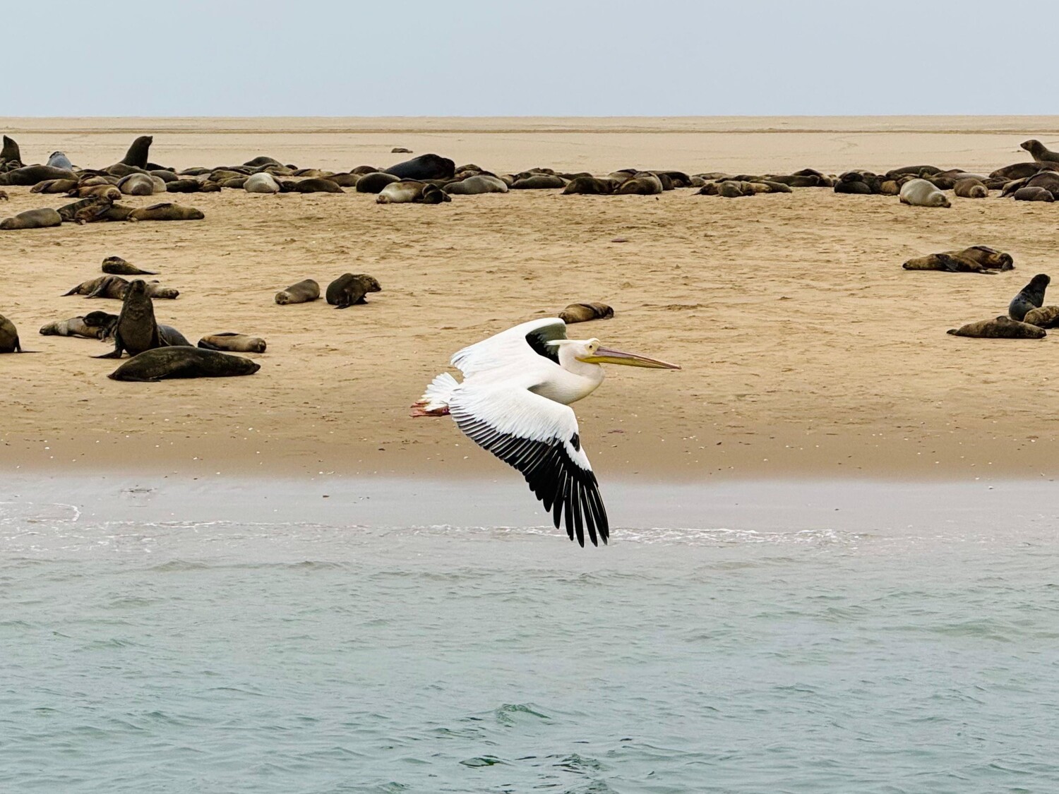 DZIEŃ 5: SWAKOPMUND, WALVIS BAY, SANDWICH HARBOUR: WODNE SAFARI KATAMARANEM I DUNE SAFARI: JEEPEM PO WYDMACH I PLAŻY.