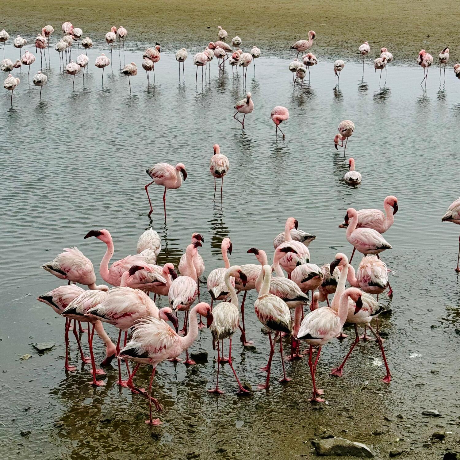 Rankiem przejazd do Walvis Bay, dokąd prowadzi m.in. najdłuższa na świecie aleja palm, ciągnąca się przez niemal 5 km. Z przystani wyruszymy na wspaniałą, edukacyjną wycieczkę morską po zatoce w poszukiwaniu przedstawicieli tzw. Wielkiej Piątki Morskiej, czyli wielorybów, delfinów, ryby mola, żółwia skórzastego oraz uchatek. Tych ostatnich będzie aż w nadmiarze, z dużym prawdopodobieństwem, że jakiś osobnik tego gatunku nagle zawita na pokładzie katamaranu, zwabiony rybą od naszego lokalnego przewodnika. W tym samym celu na pokład przybywają też czasami olbrzymie pelikany, kompletnie niebojące się ludzi. Spotkanie „oko w oko” z takim ptakiem pozostawia niezapomniane wrażenia. Trasa rejsu prowadzi w kierunku Pelican Point, ze słynną latarnią morską i 60 000 mieszkających tam uchatek. Na pokładzie zjemy też pyszny i obfity lunch, z winem musującym, wspaniałymi, świeżymi ostrygami oraz innymi daniami rybnymi, mięsnymi i wegetariańskimi. Po powrocie do portu kolejną atrakcją będzie safari po wydmach i plaży. Najpierw miniemy kopalnię soli morskiej z ogromnymi basenami, wypełnionymi w różnym stopniu tym minerałem, nadającym wodzie różnorakie barwy. W Walvis Bay Lagoon raz za razem zobaczymy kłębiące się stada flamingów. Kiedy dotrzemy do brzegu oceanu, czekają nas 2 scenariusze: jeśli przypływ będzie wystarczająco niski, do Sandwich Harbour dotrzemy jadąc po dzikiej plaży. W przypadku wysokiego przypływu, cel osiągniemy trasą przez wydmy. W końcu wyjdziemy z jeepów, aby sfotografować kolejne ikoniczne miejsce Namibii: Sandwich Harbour. Ciągnące się po horyzont wielkie wydmy, wdzierające się w srogi ocean, to widok jedyny w swoim rodzaju. Niemniejsze wrażenia daje „rajd” po wydmach Toyatami Land Cruiser ze wzmocnionymi silnikami, prowadzonymi przez doświadczonych kierowców, dając wrażenia jak na kolejce górskiej. W czasie wycieczki zostanie zaserwowany nam drugi, obfity lunch „na bogato”. Na koniec powrót do Walvis Bay plażą lub wydmami, po czym przejazd do hotelu w Swakopmund na nocleg.